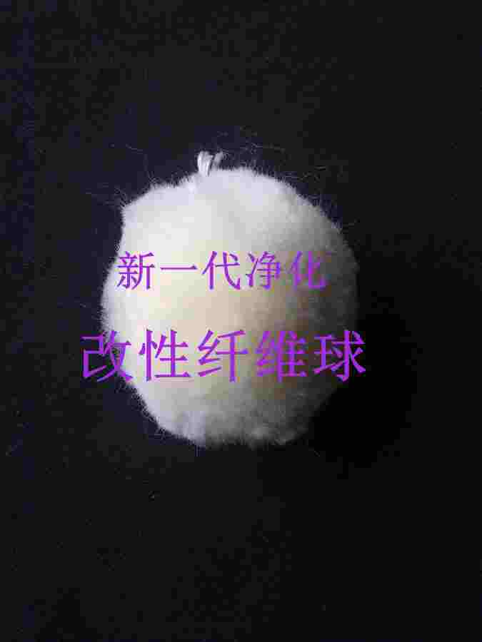 毛球,棉球,棉球濾料,纖維球,分為滌綸纖維球和改性纖維球。人力手工制做而成,新一代凈化公司的纖維球加工精密,呈柔性、可壓縮、孔隙率大、截污能力強;工作時濾層孔隙上疏下密,符合理想濾層的孔隙分布;比重略大于水,易反沖洗,材質優良有較強的耐磨性和抗化學侵蝕性能。